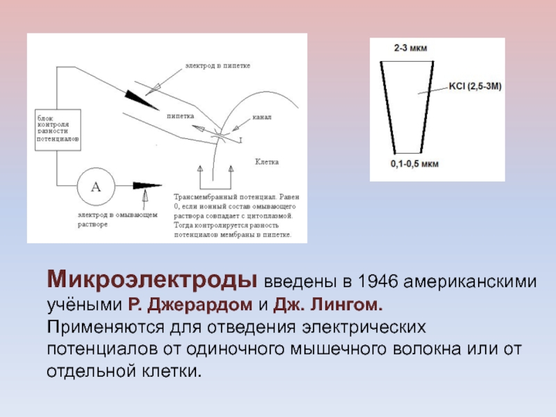 Слайд 17Микроэлектроды введены в 1946 американскими учёными Р. Джерардом и Дж.