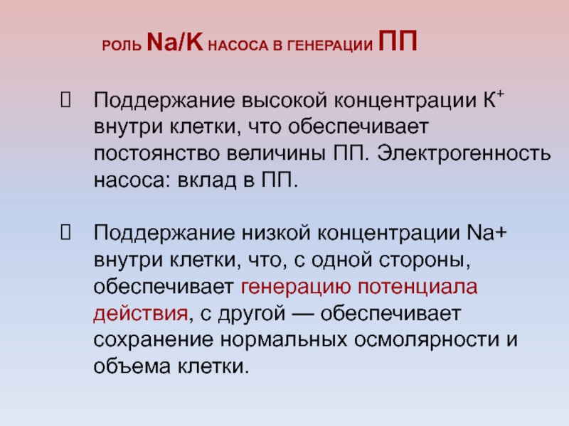 Слайд 51РОЛЬ Na/K НАСОСА В ГЕНЕРАЦИИ ПП