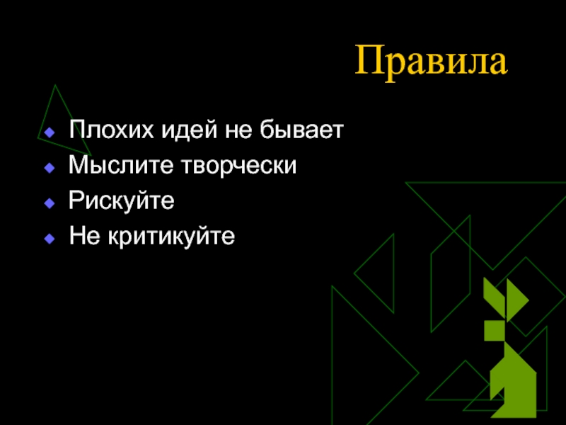 ПравилаПлохих идей не бываетМыслите творческиРискуйте Не критикуйте