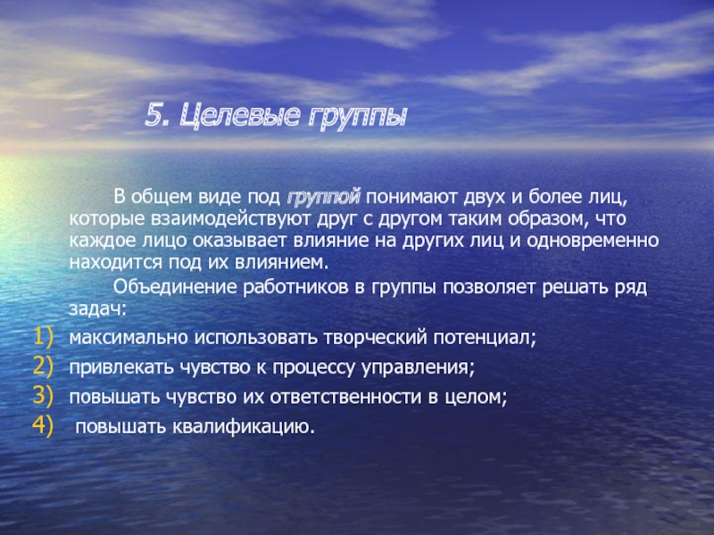 Слайд 19 Виды групп: группы руководителей, целевые (рабочие) группы, комитеты.