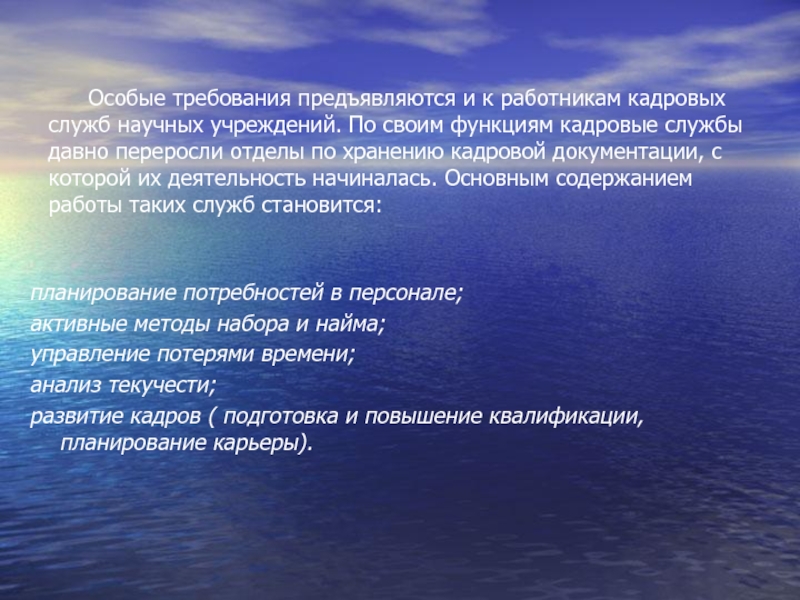 Слайд 3 Особые требования предъявляются и к работникам кадровых служб научных
