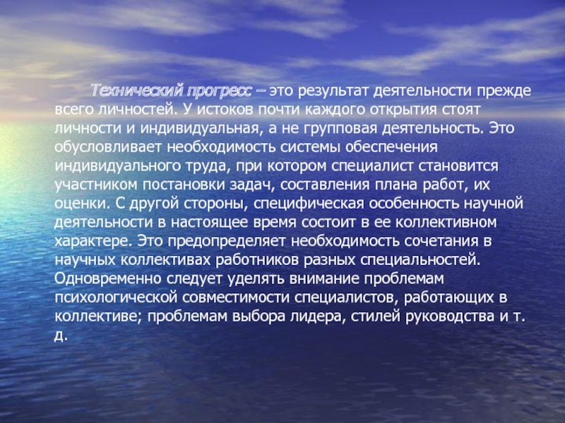 Слайд 4 Технический прогресс – это результат деятельности прежде всего личностей. У