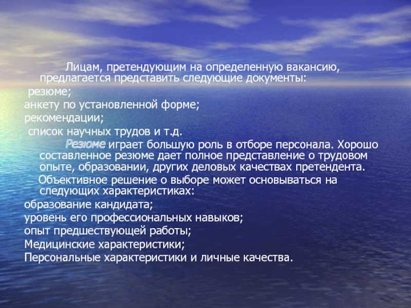 Слайд 14 Лицам, претендующим на определенную вакансию, предлагается представить следующие документы: