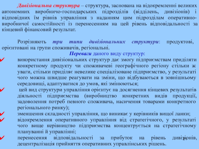 структура негнучка і не дає змоги вирішувати завдань, що залежать від умов функціонування, які постійно змінюються.