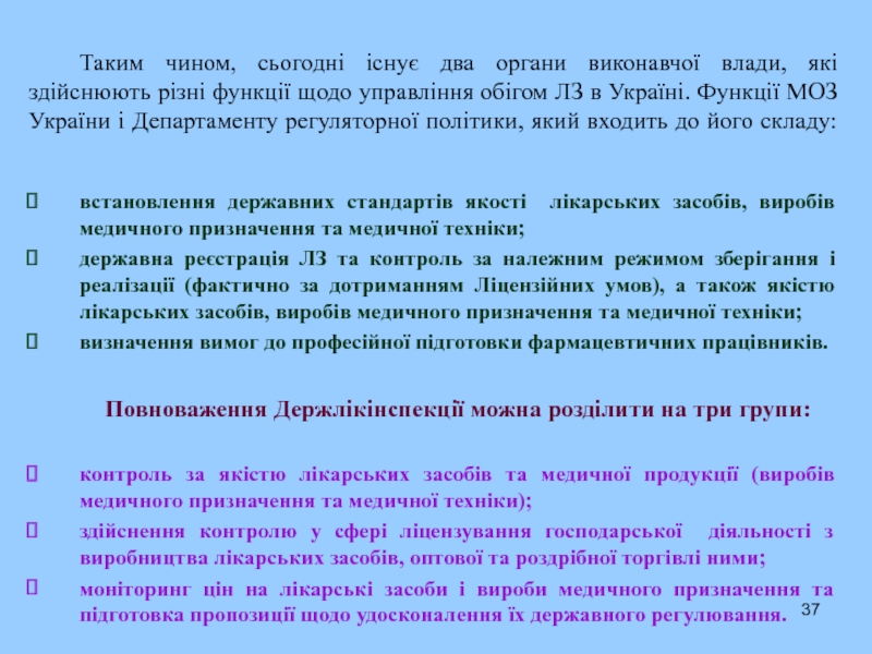 різні функції щодо управління обігом ЛЗ в Україні. Функції МОЗ