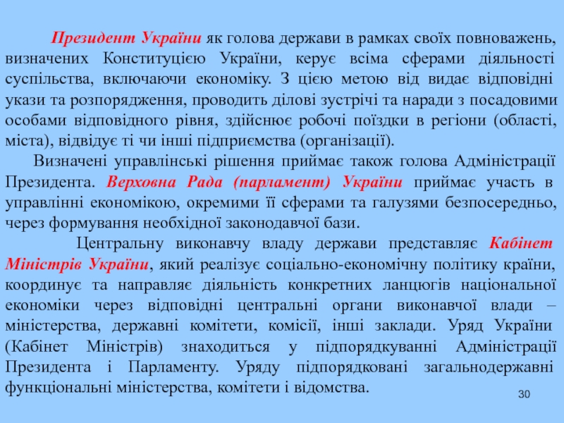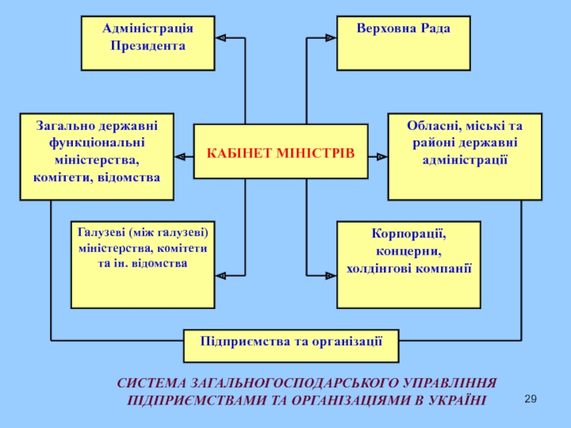 Слайд 29СИСТЕМА ЗАГАЛЬНОГОСПОДАРСЬКОГО УПРАВЛІННЯ ПІДПРИЄМСТВАМИ ТА ОРГАНІЗАЦІЯМИ В УКРАЇНІ
