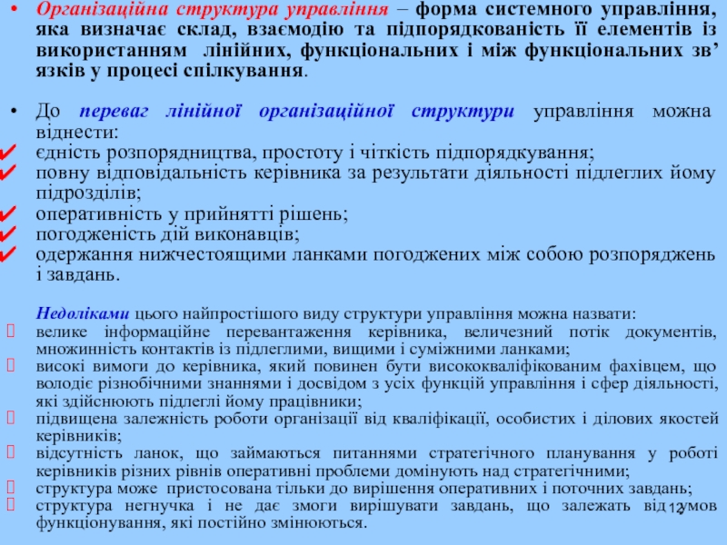 Слайд 12Організаційна структура управління – форма системного управління, яка визначає склад,