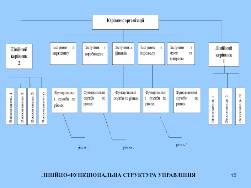 Слайд 11МОДЕЛЬ ЛІНІЙНОЇ ОРГАНІЗАЦІЙНОЇ СТРУКТУРИ