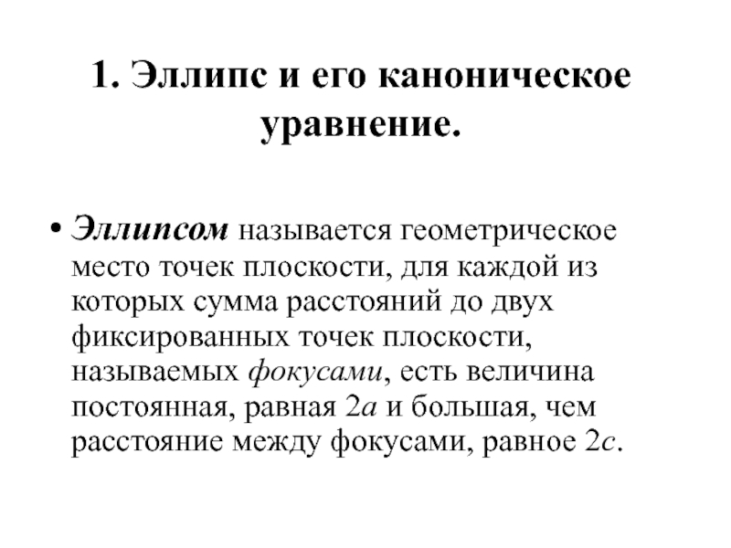 1. Эллипс и его каноническое уравнение.
