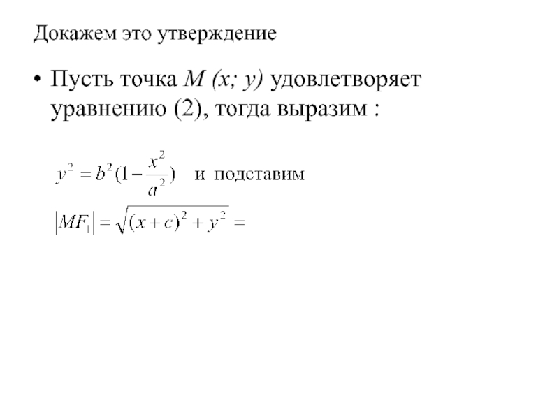 Докажем это утверждениеПусть точка M (x; y) удовлетворяет уравнению (2), тогда выразим :