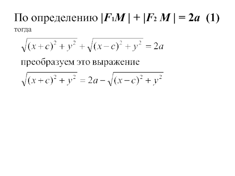 По определению |F1М | + |F2 М | = 2a (1) Получим