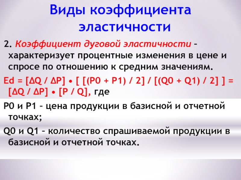 2. Коэффициент дуговой эластичности – характеризует процентные изменения
