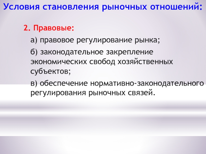 в) обеспечение нормативно-законодательного регулирования рыночных связей.