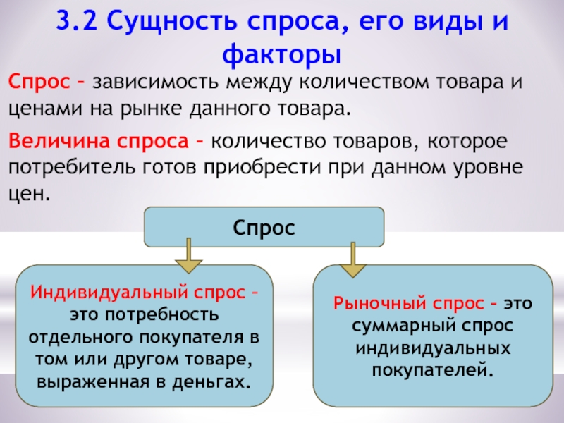 Индивидуальный спрос – это потребность отдельного покупателя в том или другом товаре, выраженная в деньгах.