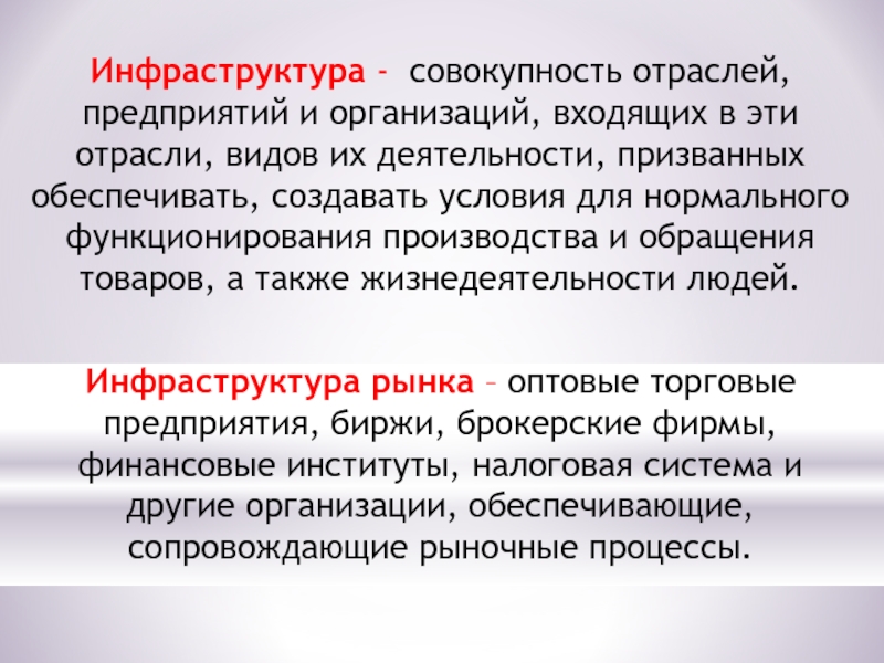 Слайд 4Инфраструктура - совокупность отраслей, предприятий и организаций, входящих в эти