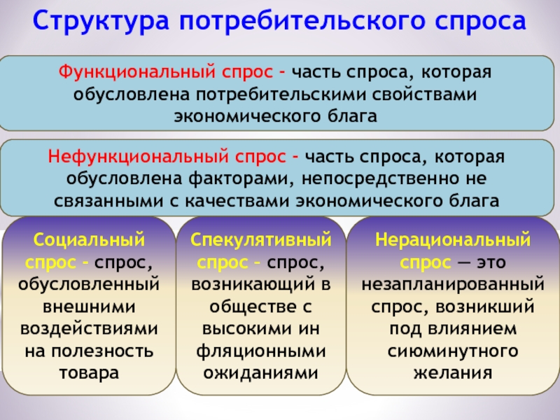 Функциональный спрос - часть спроса, которая обусловлена потребительскими свойствами экономического блага