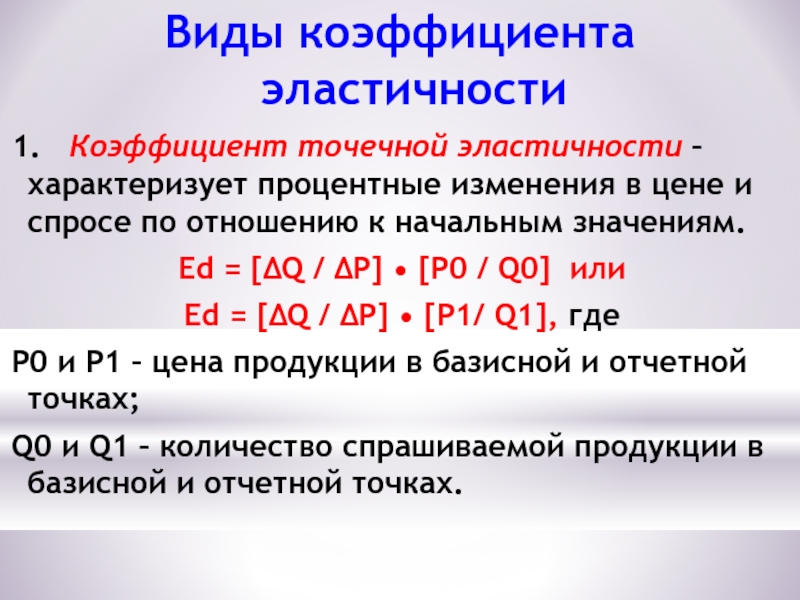 Еd = [ΔQ / ΔP] • [P1/ Q1], где