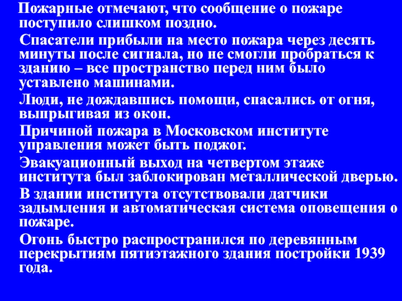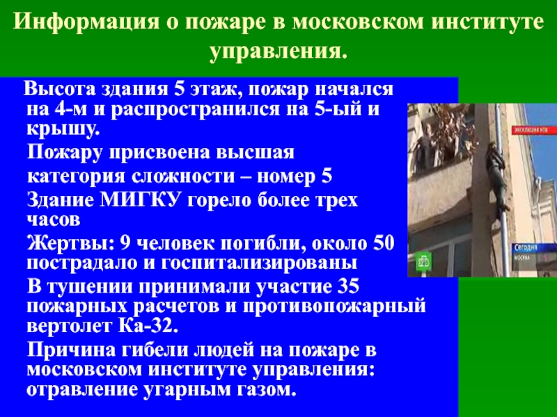 при которых погибает 18-20 тыс. человек. По числу пожаров Россия занимает в мире 4-5 место, но по числу жертв пожаров - первое, опережая все другие страны.