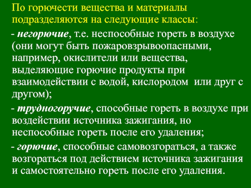 Слайд 5 По горючести вещества и материалы подразделяются на следующие