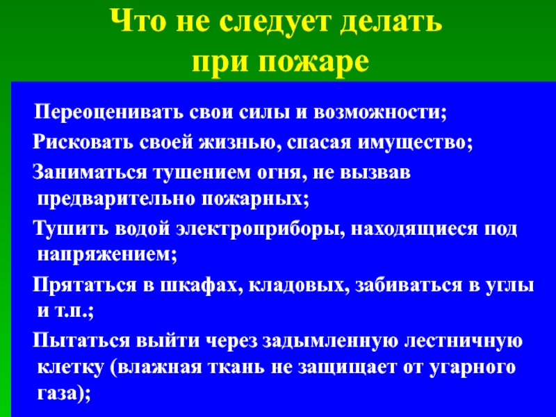 Заниматься тушением огня, не вызвав предварительно пожарных;