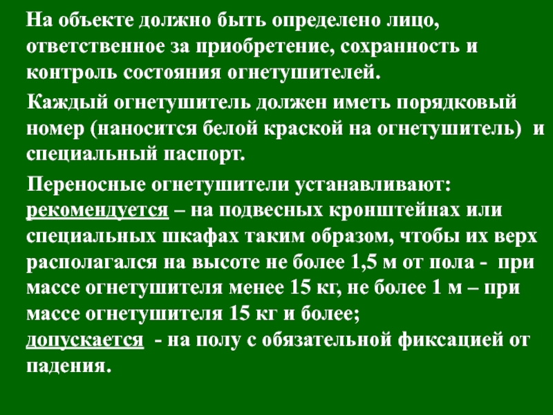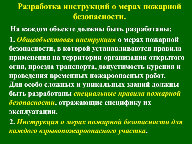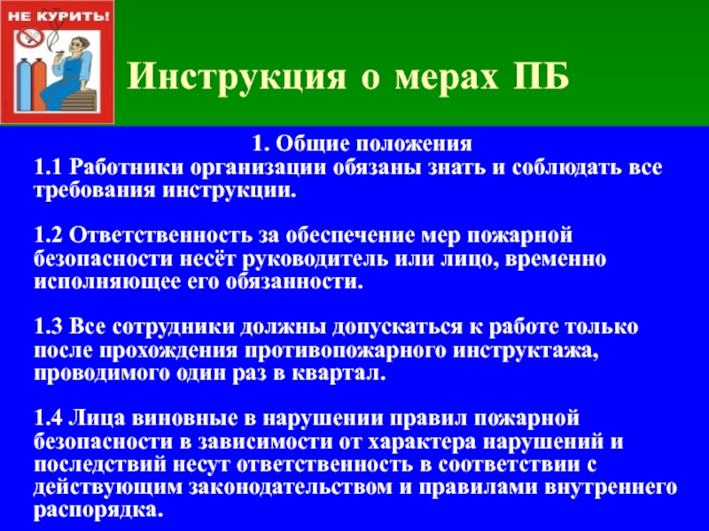 1.2 Ответственность за обеспечение мер пожарной безопасности несёт руководитель или лицо, временно исполняющее его обязанности.