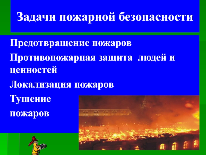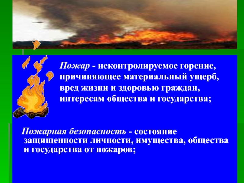 Пожарная безопасность - состояние защищенности личности, имущества, общества и государства от пожаров;