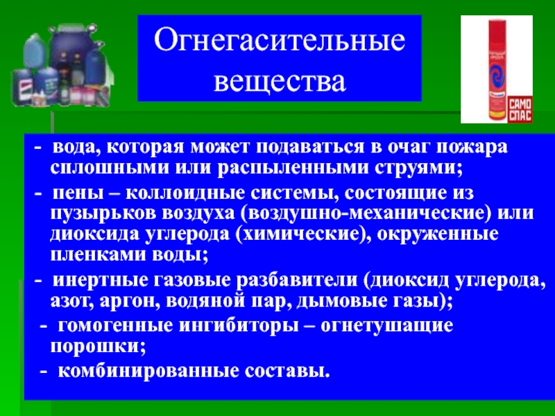- инертные газовые разбавители (диоксид углерода, азот, аргон, водяной пар, дымовые газы);