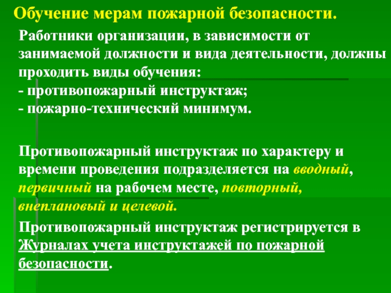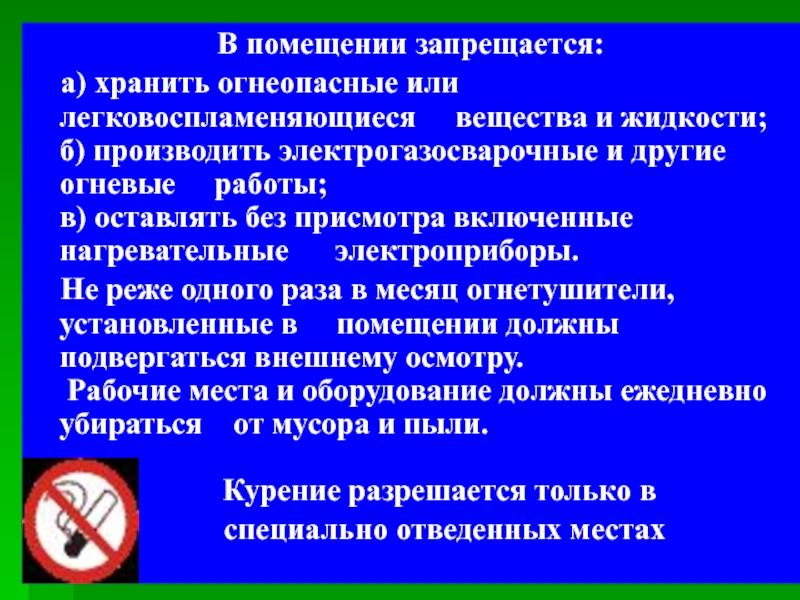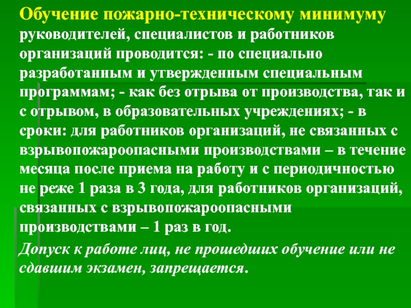 1.3 Все сотрудники должны допускаться к работе только после прохождения противопожарного инструктажа, проводимого один раз в квартал.