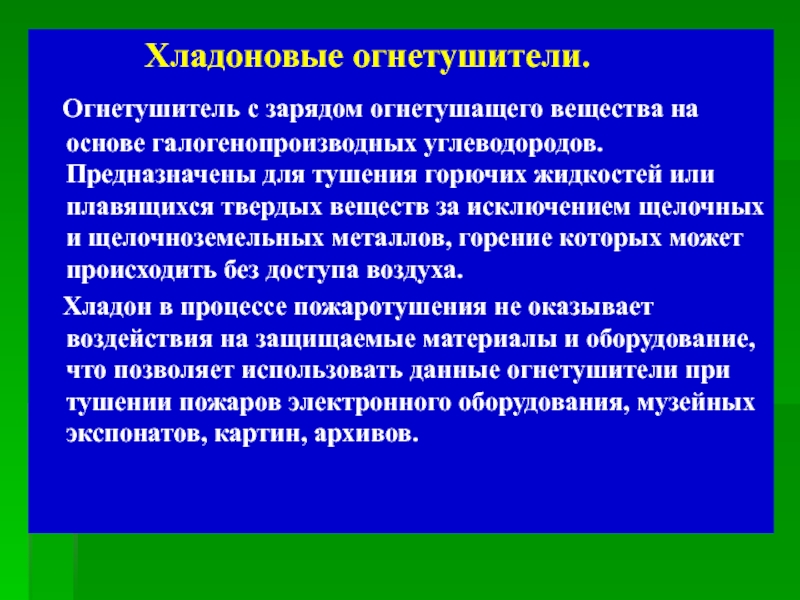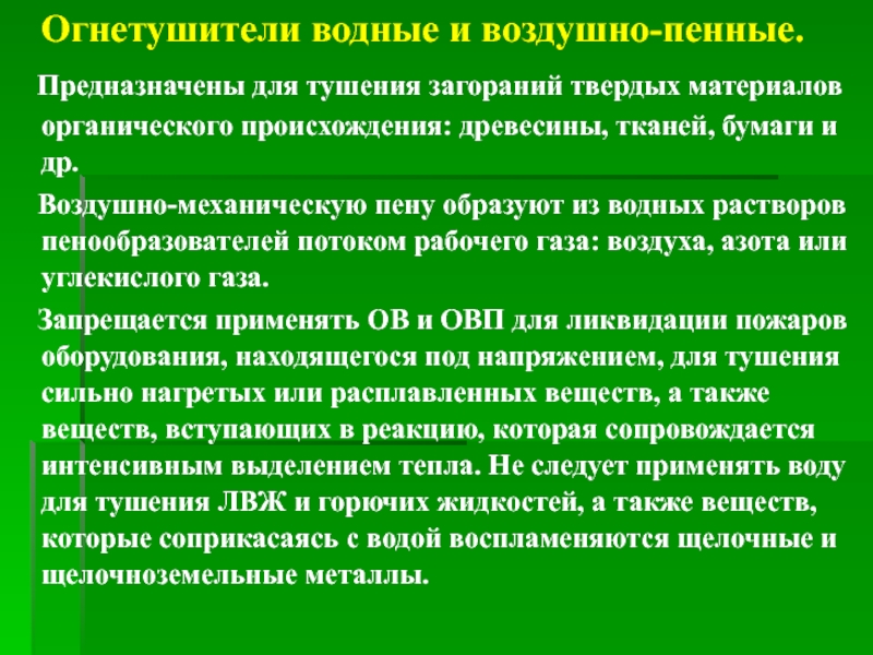 - негорючие, т.е. неспособные гореть в воздухе (они