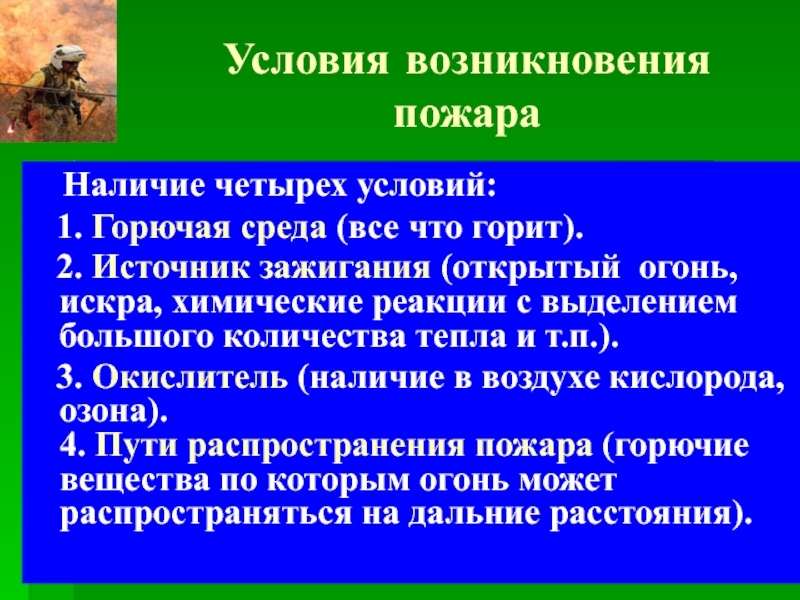 искра, химические реакции с выделением большого количества тепла и т.п.).