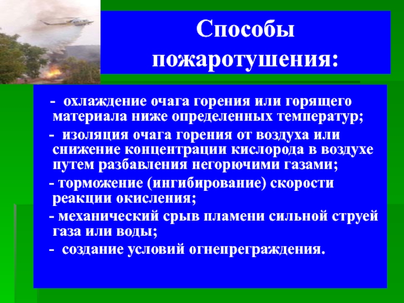 концентрации кислорода в воздухе путем разбавления негорючими газами;