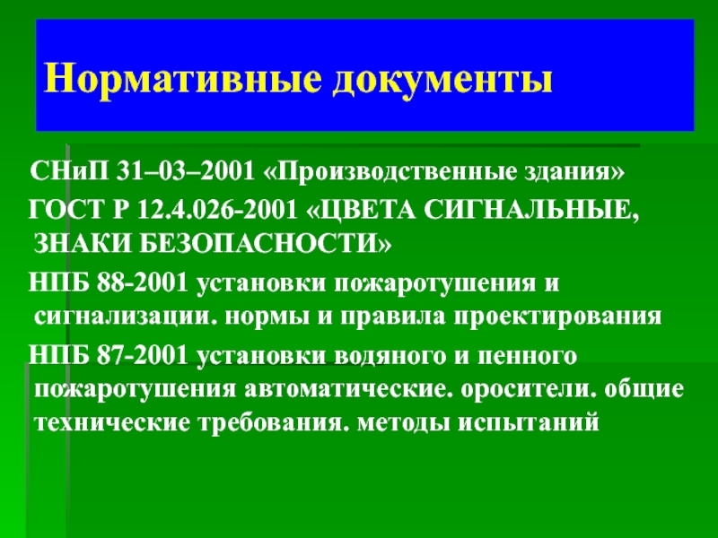 НПБ 87-2001 установки водяного и пенного пожаротушения автоматические. оросители. общие технические требования. методы испытаний