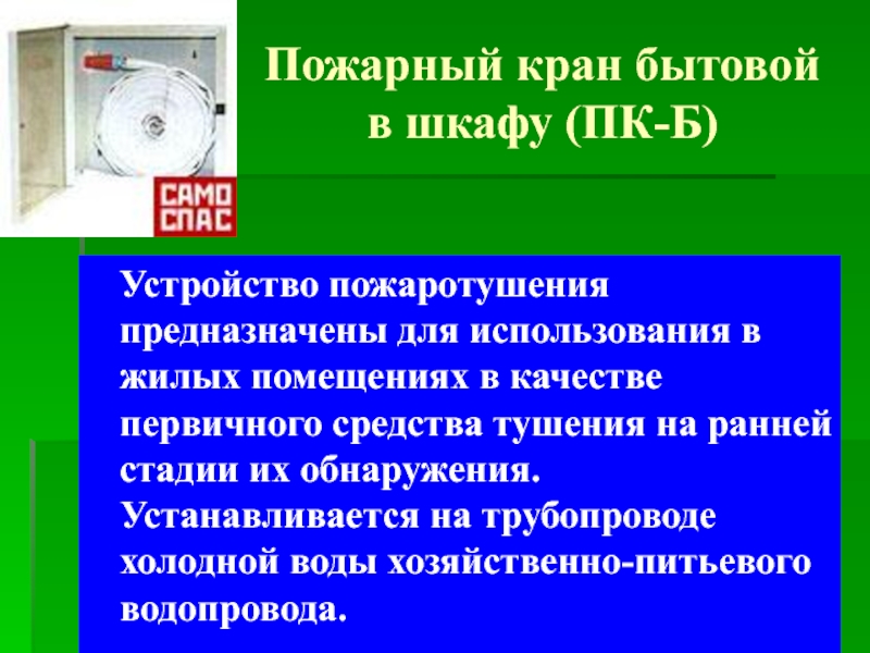 Слайд 85Пожарный кран бытовой в шкафу (ПК-Б)