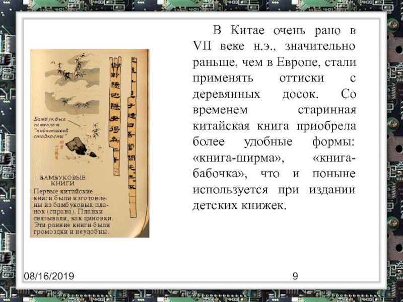 временем старинная китайская книга приобрела более удобные формы: «книга-ширма», «книга-бабочка», что и поныне используется при издании детских книжек.