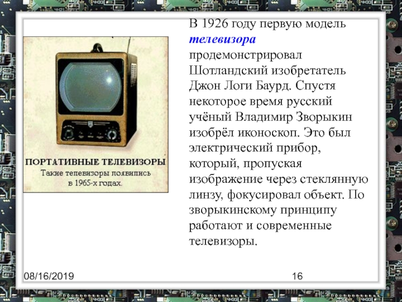Логи Баурд. Спустя некоторое время русский учёный Владимир Зворыкин изобрёл