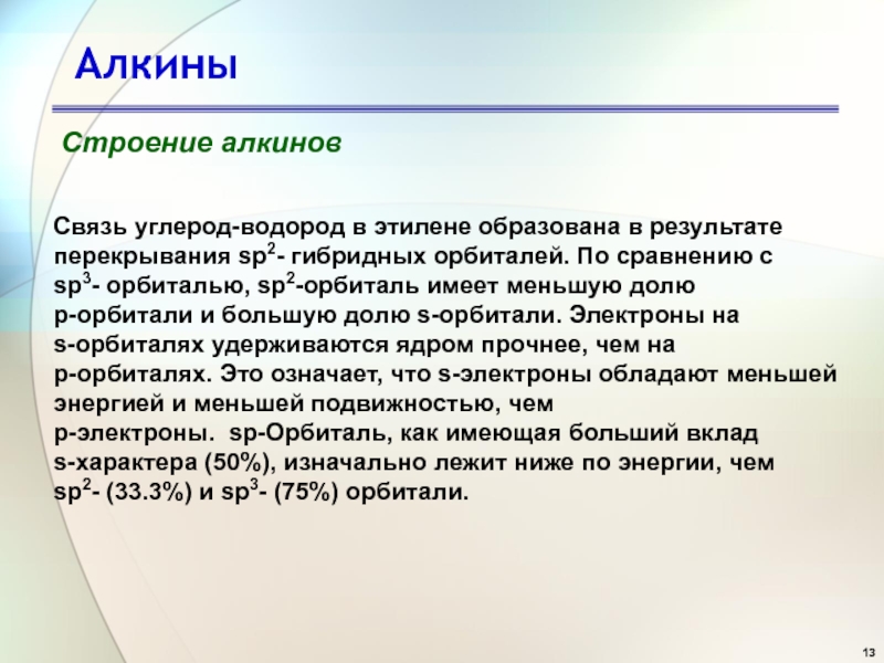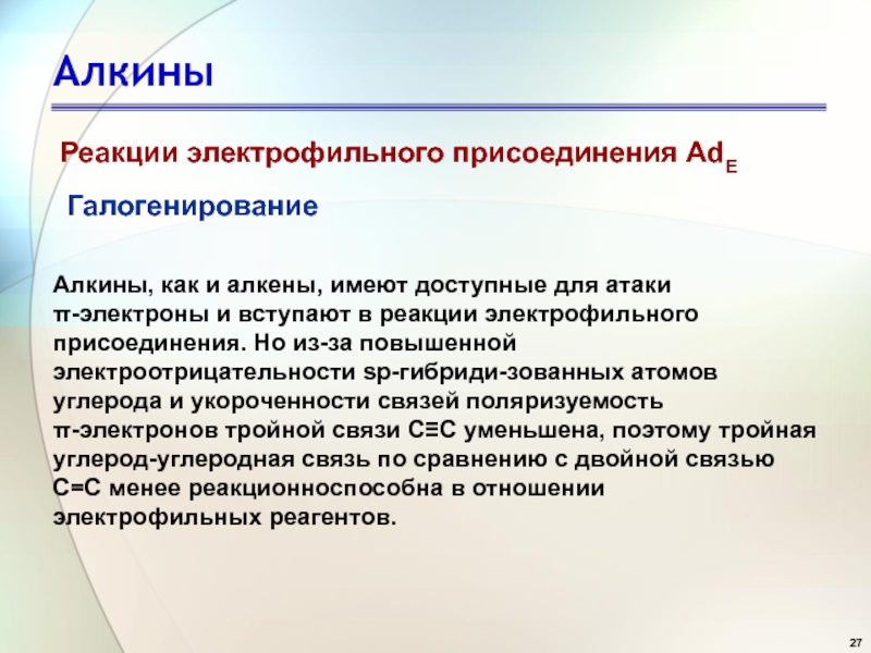 ≡С–Н больше, чем в этилене; sp-гибридизация затрудняет гомолитический разрыв связи ≡С–Н с образованием радикалов, но облегчает гетеролитический разрыв этой связи с образованием ионов