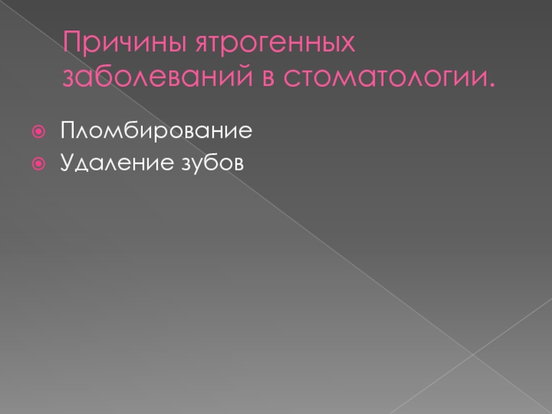 Причины ятрогенных заболеваний в стоматологии.Пломбирование Удаление зубов