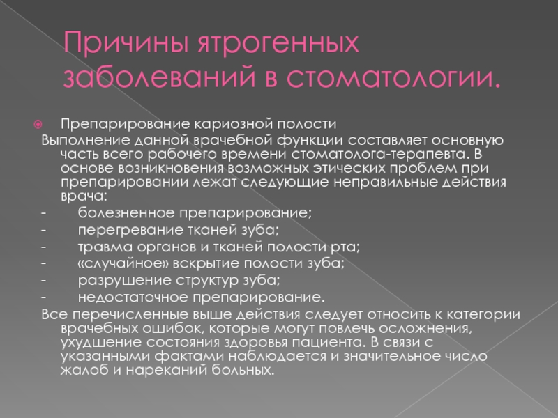 Слайд 8Причины ятрогенных заболеваний в стоматологии.