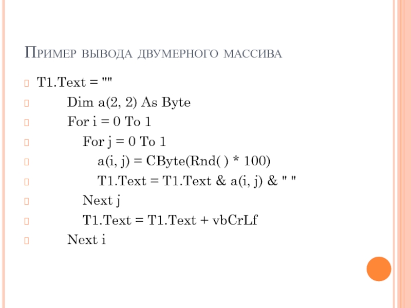 Слайд 27Пример вывода двумерного массива