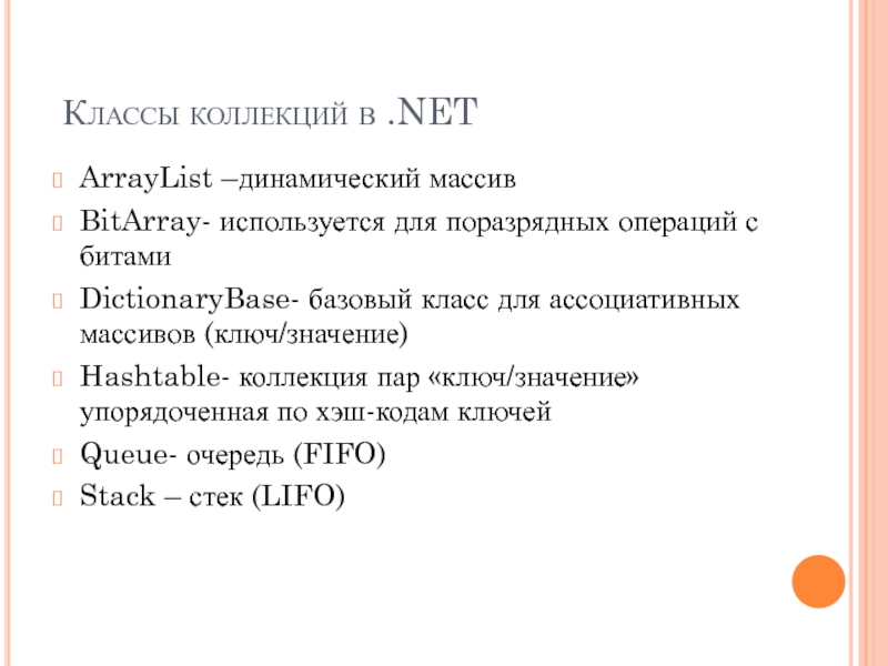 Слайд 20 Классы коллекций в .NET