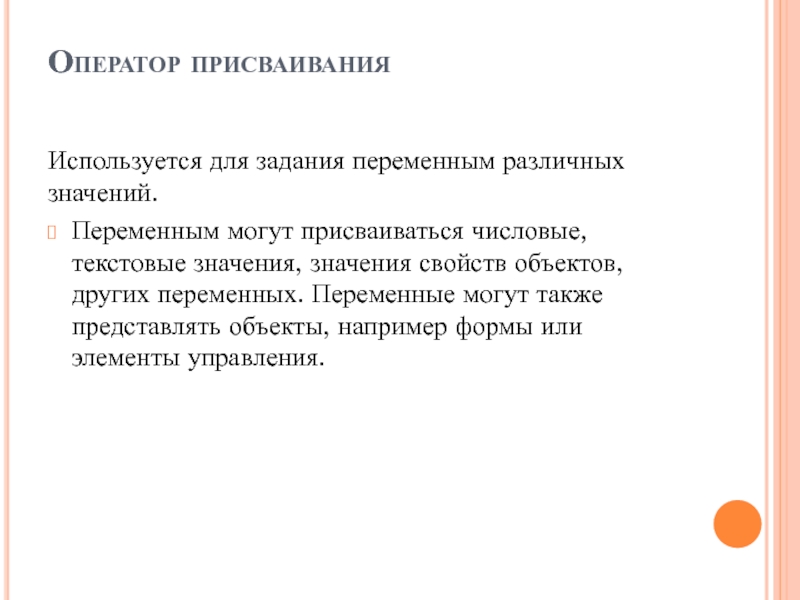 Слайд 3Оператор присваивания