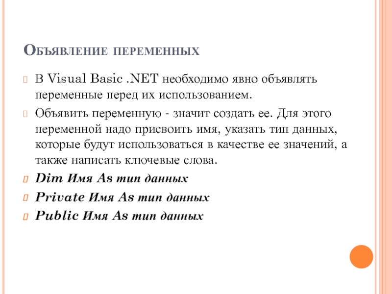 В Visual Basic .NET необходимо явно объявлять переменные