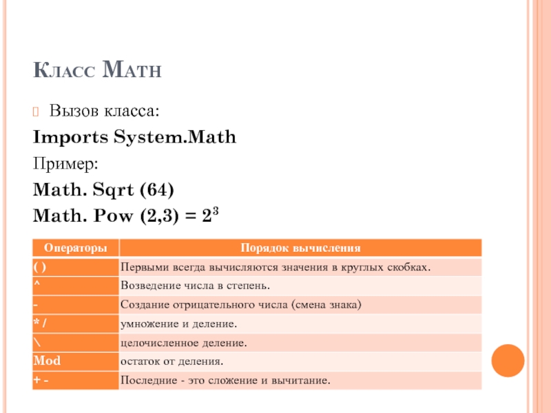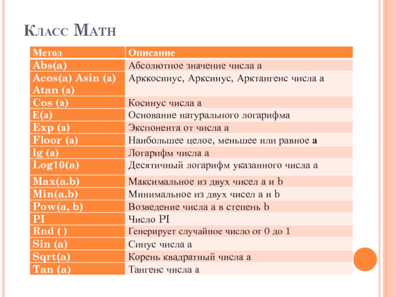 Слайд 13Класс Math