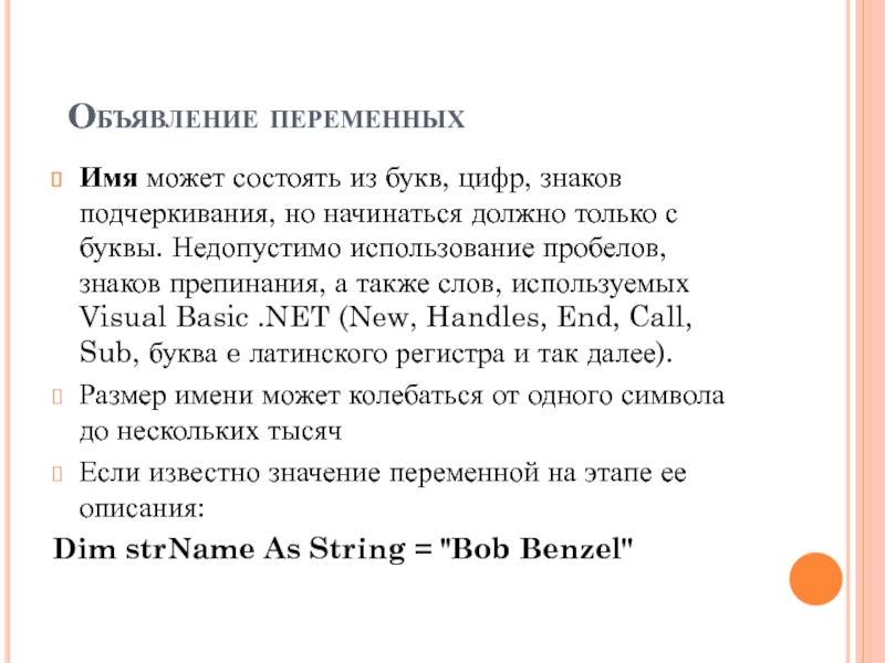 Слайд 5Имя может состоять из букв, цифр, знаков подчеркивания, но начинаться