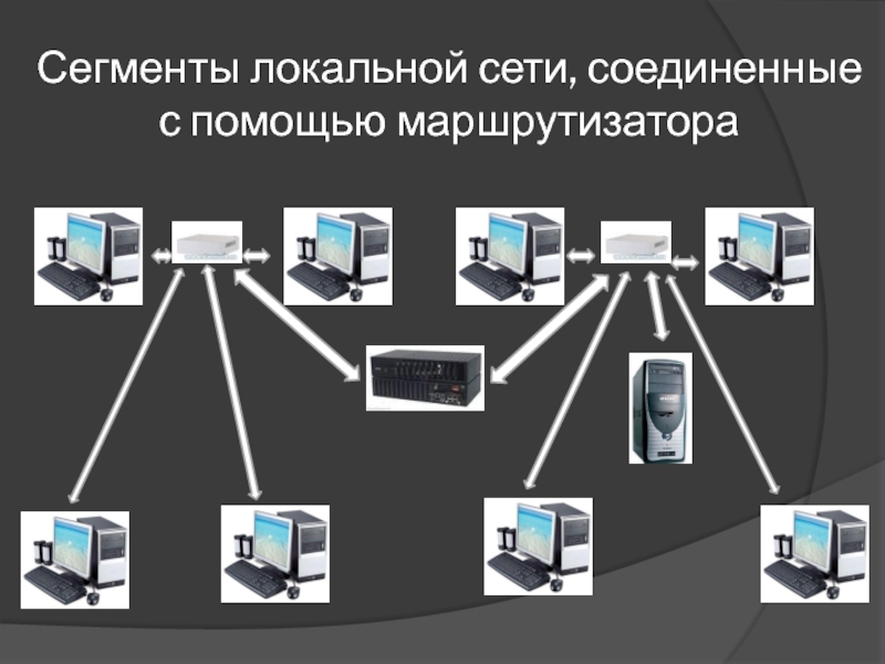 Слайд 6Сегменты локальной сети, соединенные с помощью маршрутизатора