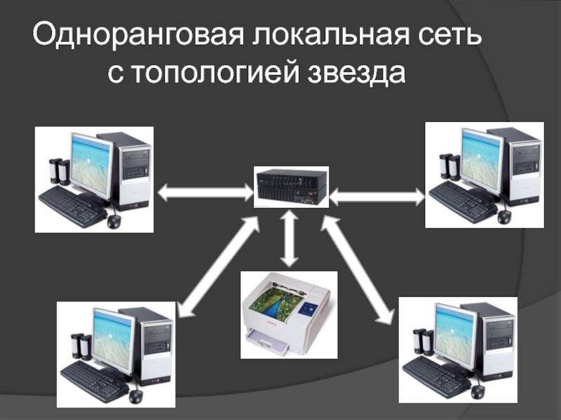 Слайд 4Одноранговая локальная сеть с топологией звезда