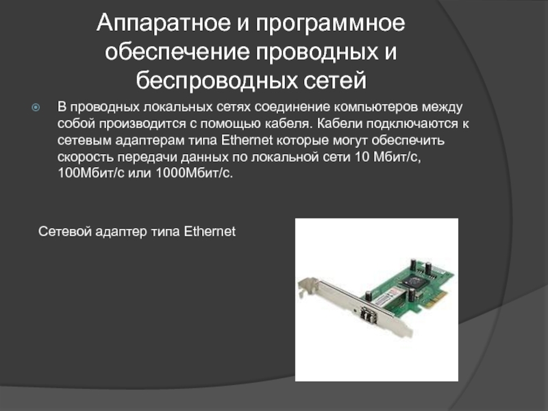 Слайд 7Аппаратное и программное обеспечение проводных и беспроводных сетей