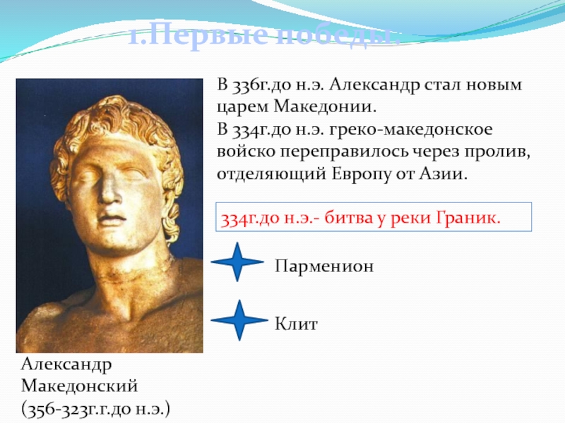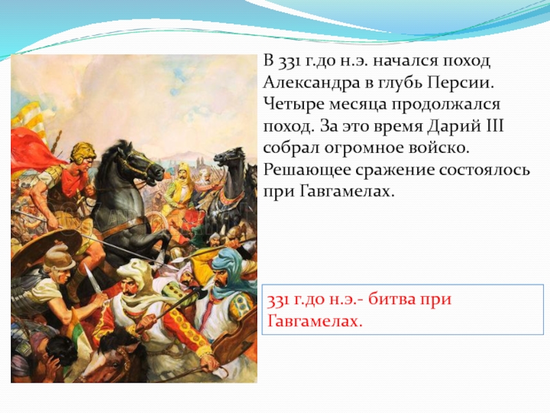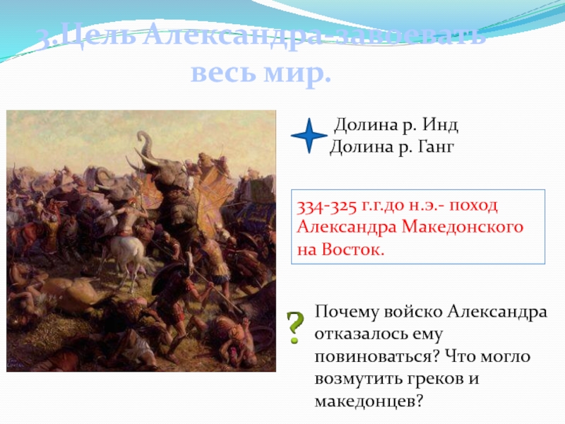 334-325 г.г.до н.э.- поход Александра Македонского на Восток.