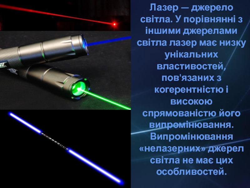 Слайд 18Лазер — джерело світла. У порівнянні з іншими джерелами світла