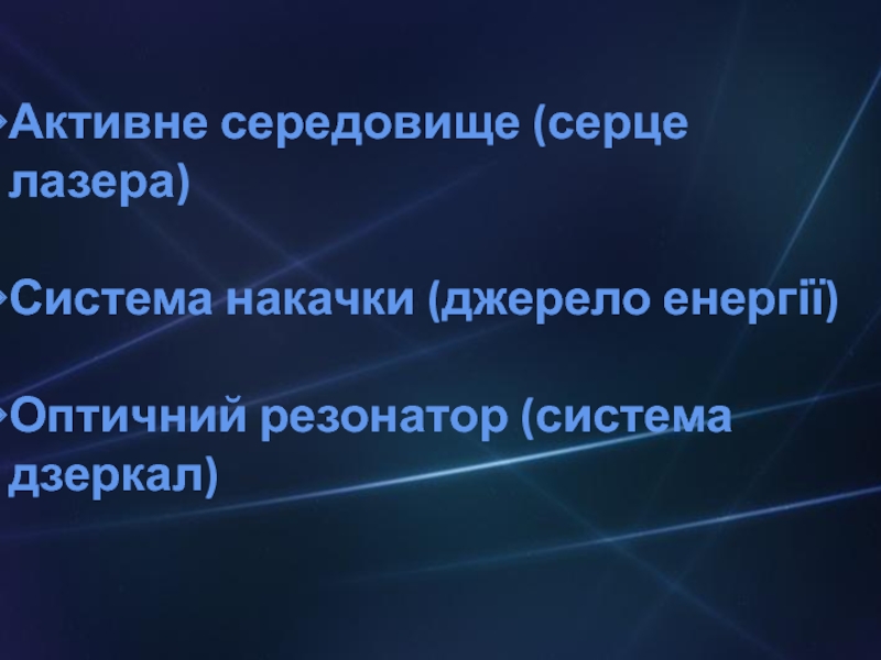 Слайд 5Головний елемент лазера — активне середовище, для утворення якого використовують: